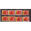 All stamps are on paper, cut-square, no tears. Some are white, others manilla paper,